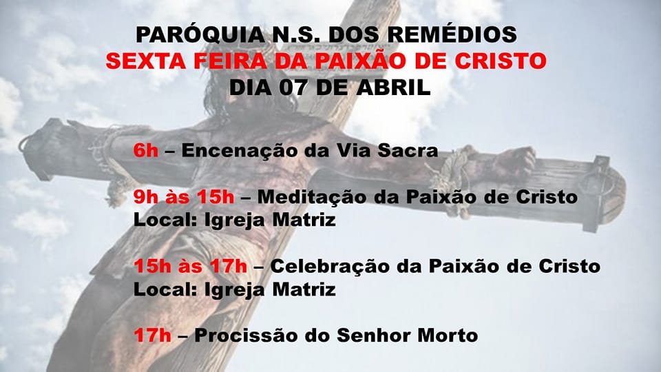 Confira a programação da Paróquia Nossa Senhora dos Remédios nesta sexta-feira Santa (07)