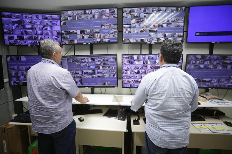 O sistema tem mais de 500 câmeras de segurança que fiscalizam desde a chegada das urnas, o local que ficaram guardadas até a distribuição para as mais de 8 mil seções eleitorais.