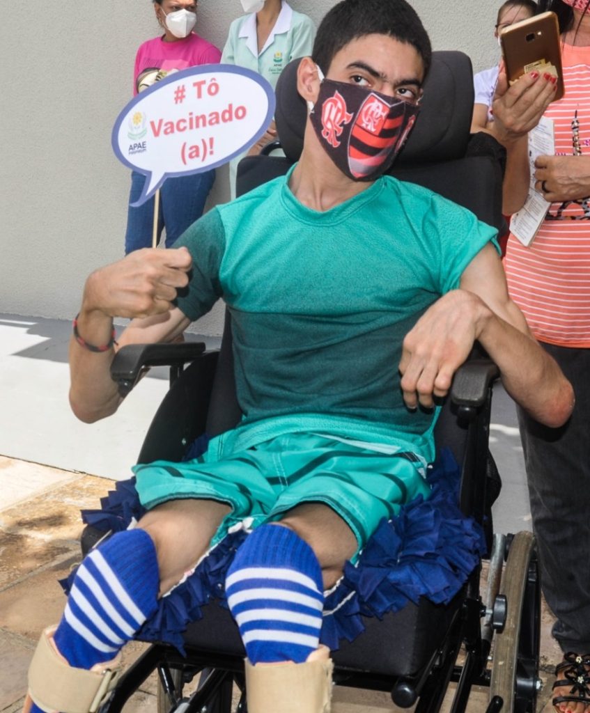 Entre as pessoas que receberam a 1ª dose da vacina Oxford Astrazeneca estão aquelas com mais de 18 anos com deficiência permanente, seja por transtorno do espectro autista, síndrome de Down ou com paralisia cerebral.