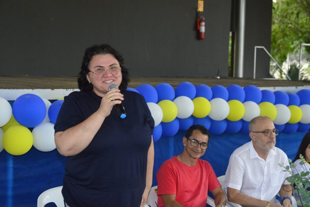 A secretária Tânia Marilda Monteiro fala que há 3 anos tem essa parceria com objetivo de fomentar a inclusão social. “Pelo terceiro ano estamos juntos nessa parceria com a FENABB (Federação Nacional das AABBs), juntos para levar às crianças das escolas municipais oportunidades e garantir direitos. São 125 alunos que recebem aulas esportivas, como natação, e aprendizagem”, disse.