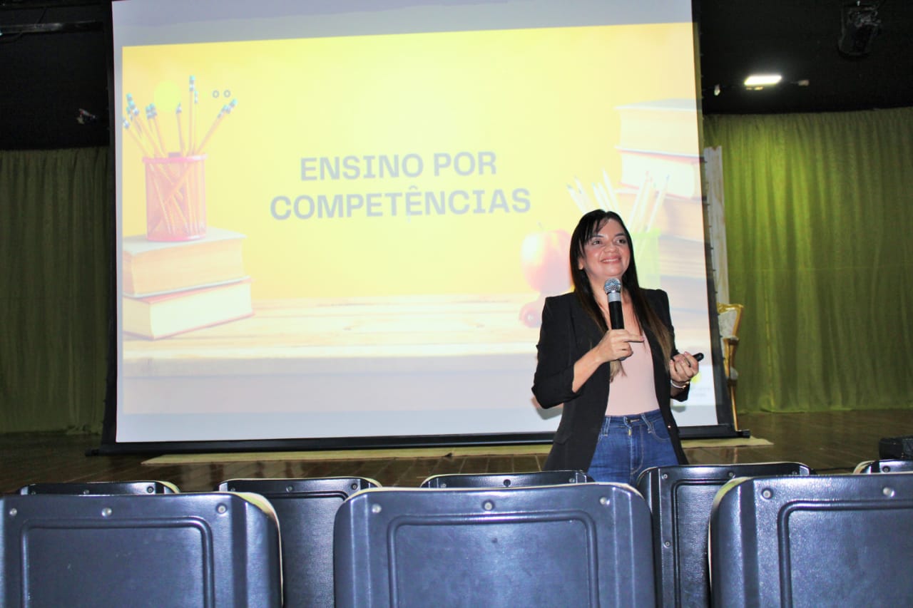 “Pela manhã estivemos com professores do 1º ao 5º ano [do Ensino Fundamental], falando sobre ‘Recomposição de Aprendizagens e a tarde, trabalhamos com professores do 6º ao 9º ano’, com a divisão geral sobre competências e metodologias ativas, para que possamos embasar essas questões no trabalho do professor, para que não sejam apenas as mais tradicionais, mas com o aluno no centro do processo”, disse Marciane Moraes, professora e pedagoga, palestrante de quinta-feira, dia 26 de janeiro.