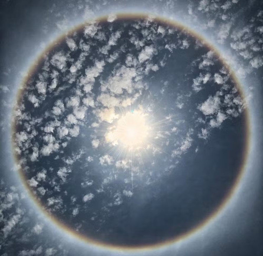 Moradores de algumas cidades do Piauí foram surpreendidos na manhã desta quarta-feira (25) com a aparição de um halo solar, fenômeno óptico que forma um anel luminoso ao redor do sol. Veja fotos do fenômeno abaixo.