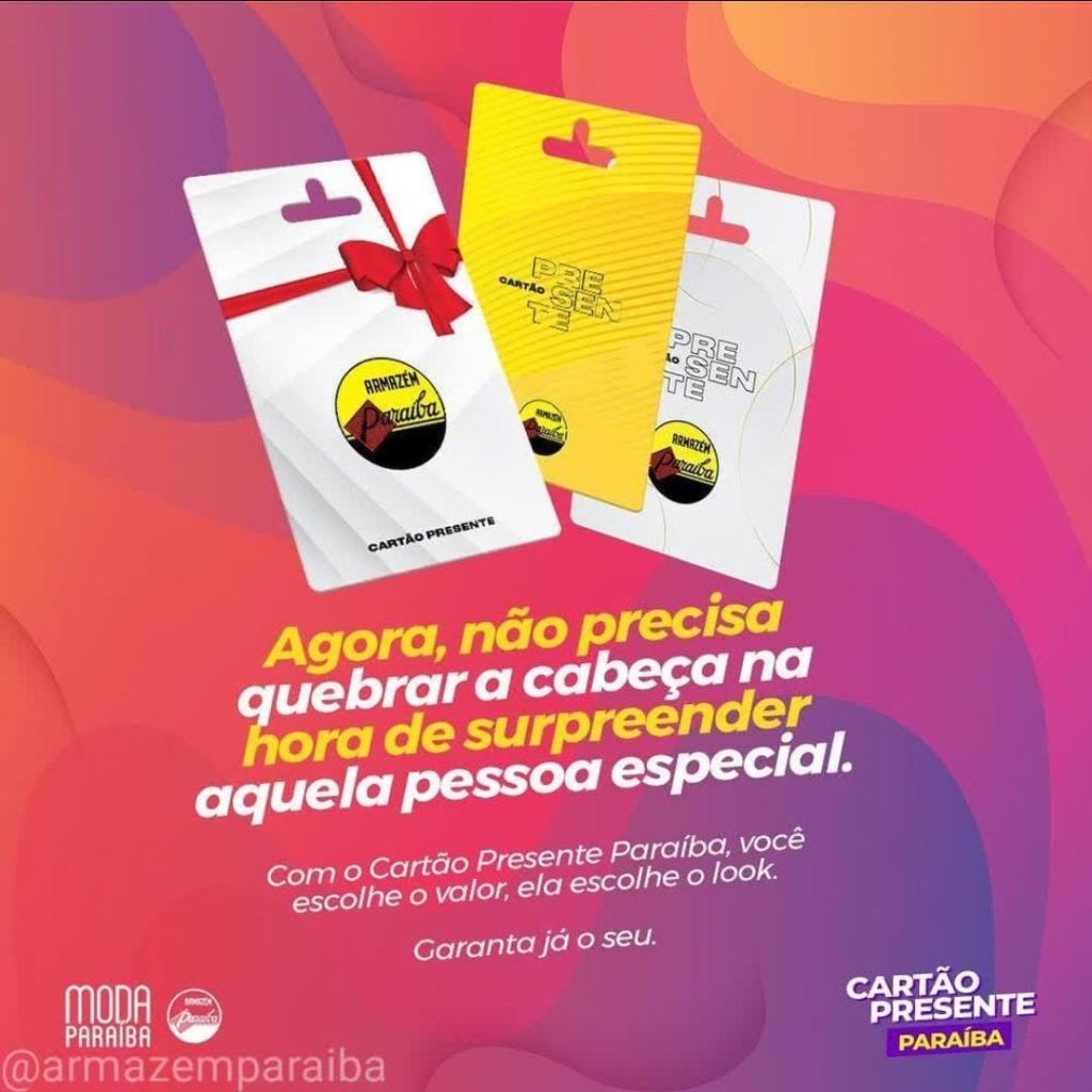 Surpreenda aquela pessoa especial com o Cartão Presente Paraíba! Você escolhe o valor, ela escolhe o look!