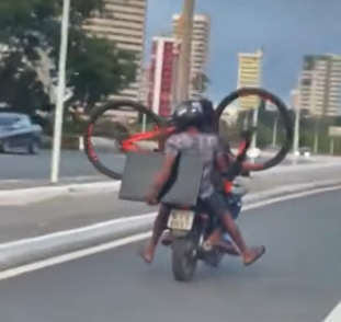 No mesmo dia em que fez os arrastões o suspeito foi filmado com mais duas pessoas na Avenida João XXIII, em Teresina, levando uma bicicleta e TV em uma motocicleta.