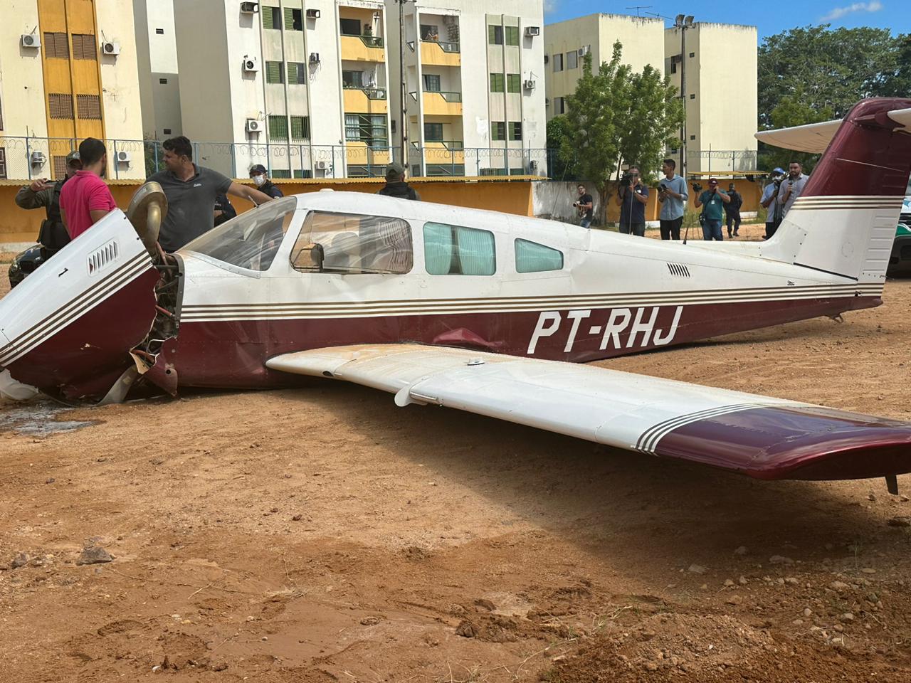 O avião de pequeno porte caiu por volta das 12h no campo de futebol do Bariri, na Zona Norte de Teresina, que fica próximo ao aeroporto da capital. A aeronave PT-RHJ vinha de Fortaleza (CE) com destino ao município de Araguaína (TO), e parou para abastecimento de combustível.