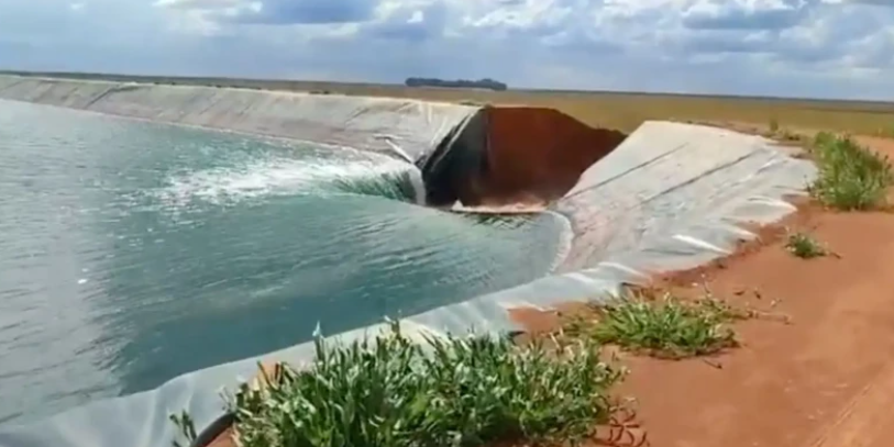 Um reservatório de grande porte se rompeu na zona rural de Baixa Grande do Ribeiro, no sul do Piauí, na última quinta-feira (26/03). O incidente ocorreu em uma fazenda da região utilizada para plantação de grãos e foi registrado em vídeo que circula nas redes sociais.