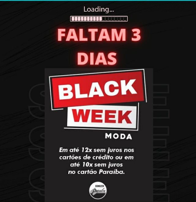 Vem ai a Black Week Moda Paraíba de 22 a 27 de novembro com descontos de até 70% em todos os setores de moda, confira: