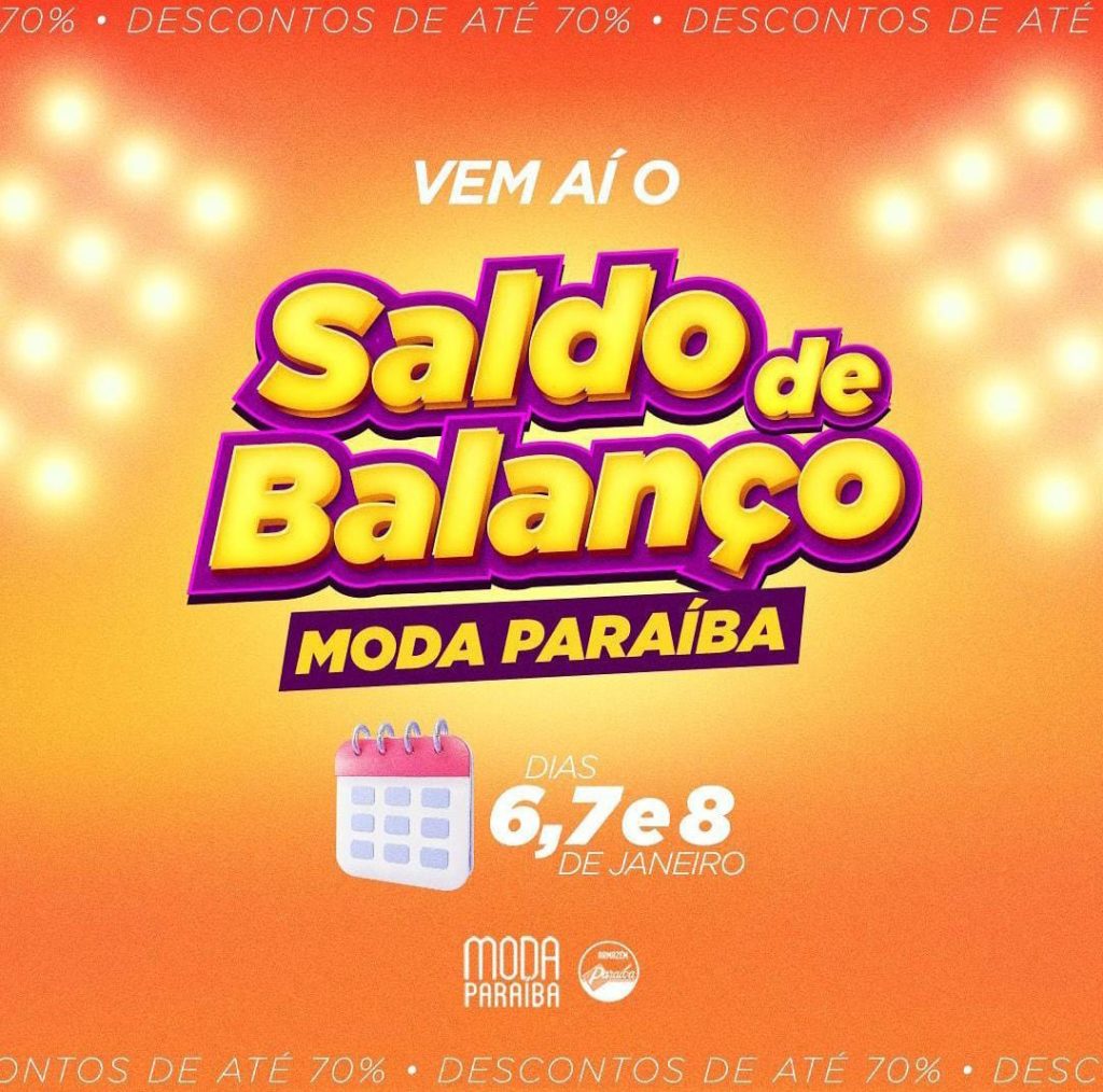 Comece o ano em grande estilo! Vem aí o Saldo de Balança Moda Paraíba nos dias 6, 7 e 8 de janeiro com descontos de até 70%!