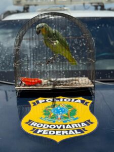 PRF resgata papagaio-do-mangue na PI-116, próxima à rotatória da Praia do Coqueiro, em Luís Correia